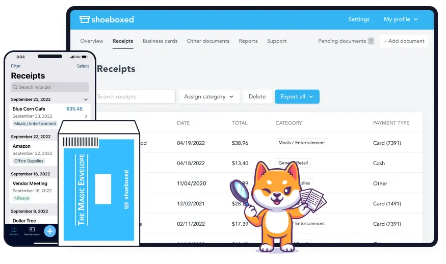 Shoeboxed also allows users to generate expense summaries based on categorized receipts. Reports may include time-based summaries, category totals, or transaction lists.